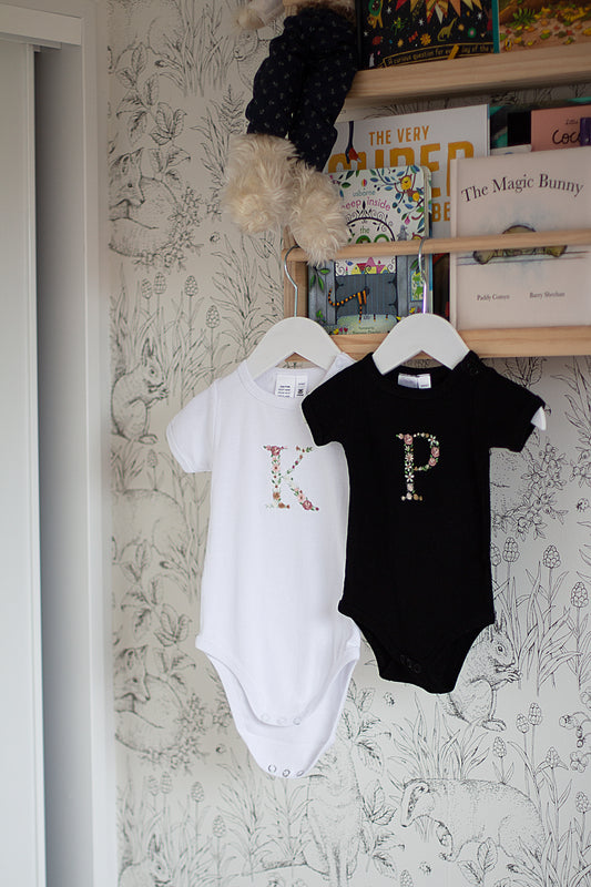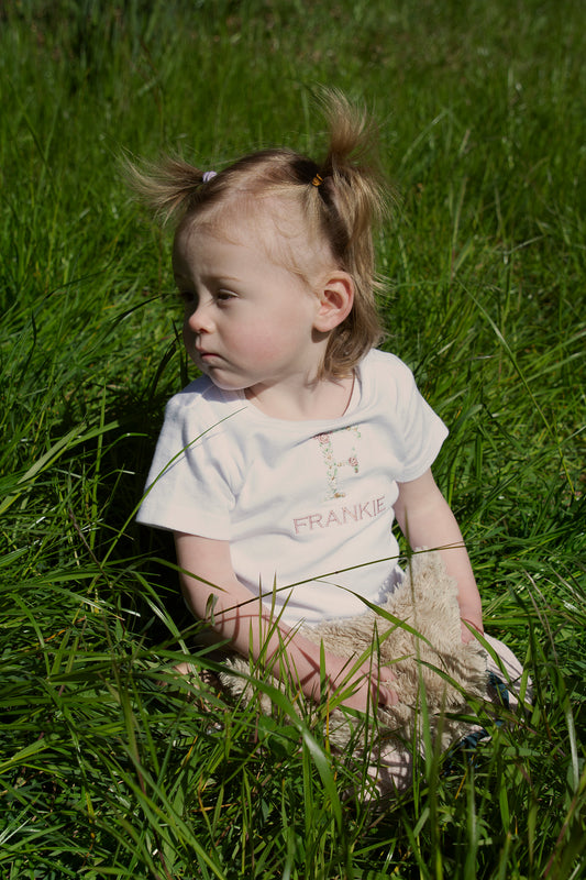 FLORAL INITIAL INFANT ONE PIECE